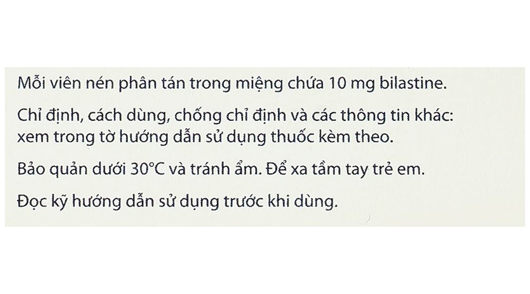 Bilaxten 10mg điều trị viêm mũi dị ứng, mày đay (1 vỉ x 10 viên)