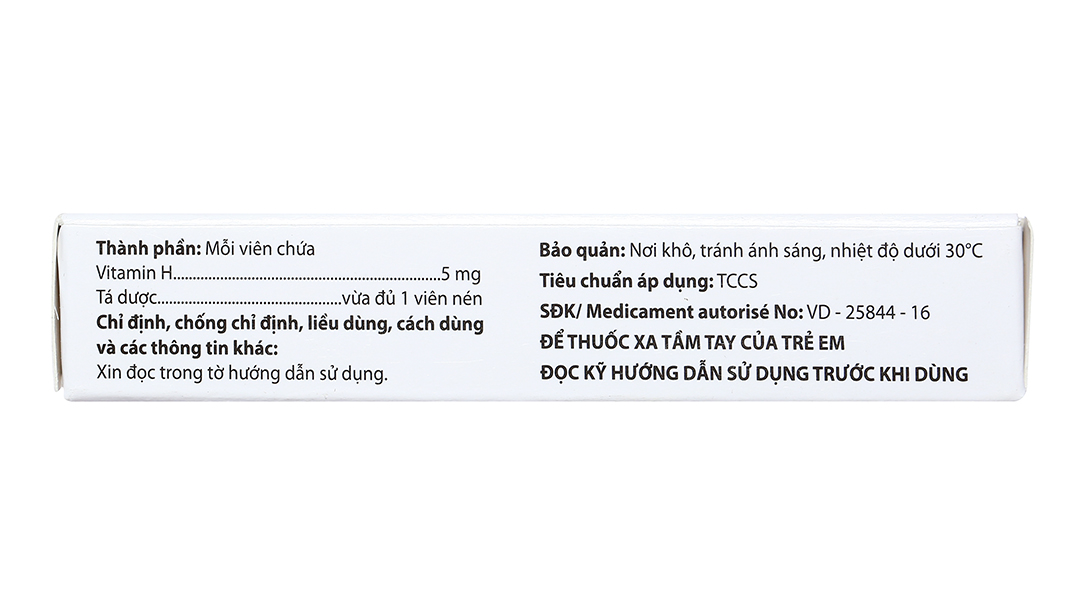 Người lớn và trẻ nhỏ: thiếu hụt Biotin do rối loạn di truyền về enzym phụ thuộc Biotin: uống 5 – 10mg/ngày.