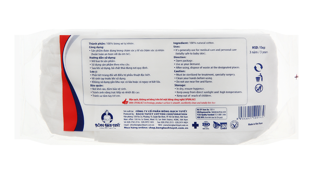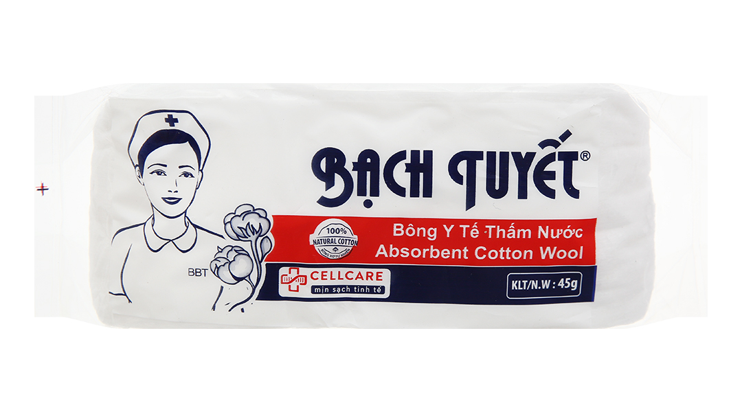 Bông gòn Bạch Tuyết 45g là sản phẩm được sản xuất từ 100% bông xơ tự nhiên.