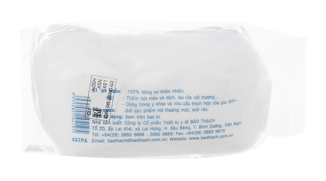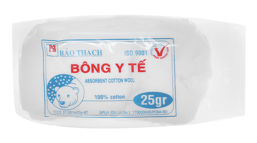 Bông y tế Bảo Thạch 25g được làm từ 100% bông tự nhiên, có sợi sơ dài và chắc chắn, nên khi sử dụng sẽ không bị đổ bụi.