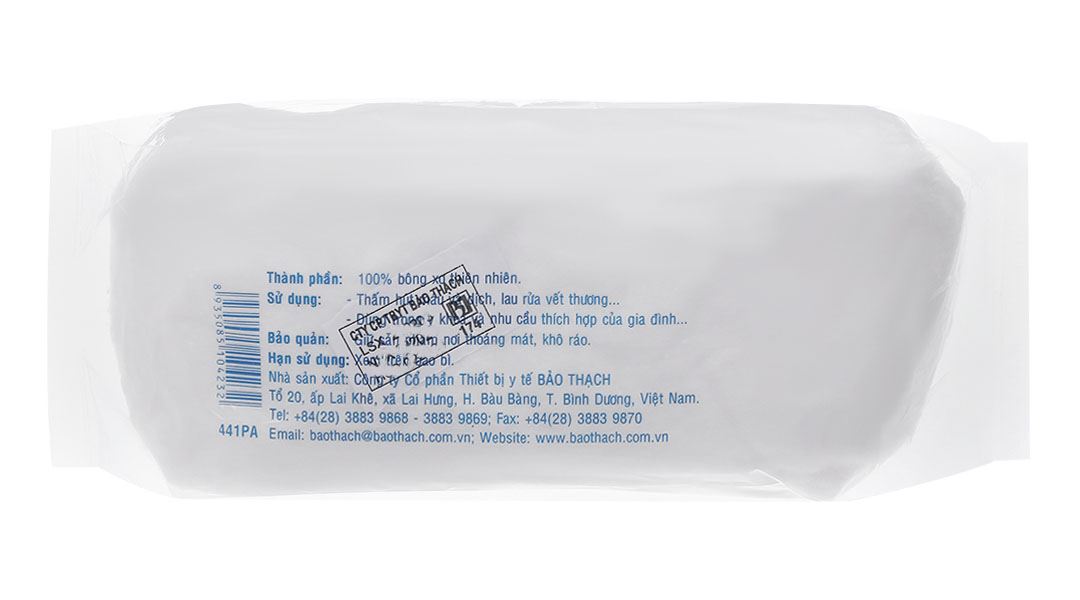 Bông gòn Bảo Thạch 50g được làm từ 100% bông tự nhiên, có sợi sơ dài và chắc chắn, nên khi sử dụng sẽ không bị đổ bụi.