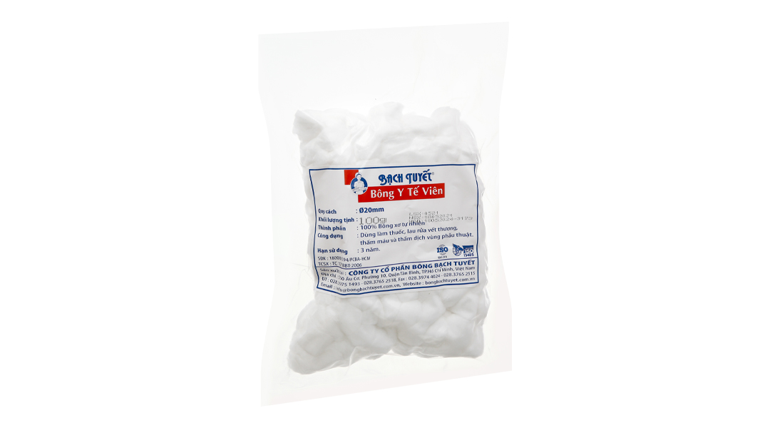 Bông gòn viên Bạch Tuyết được sản xuất từ 100% bông xơ tự nhiên.