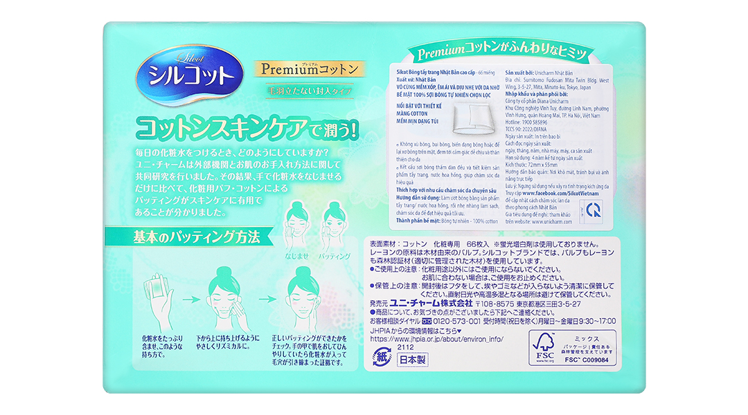 - Bông tẩy trang Silcot 66 miếng cao cấp xuất xứ từ Nhật Bản được làm từ 100% sợi bông tự nhiên chọn lọc.