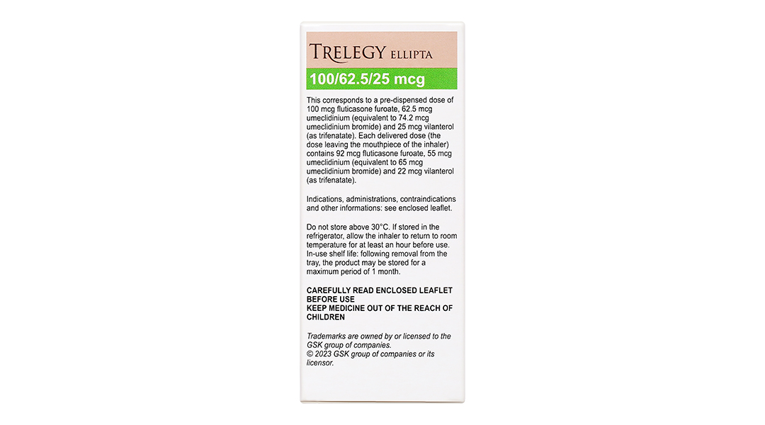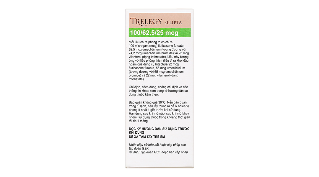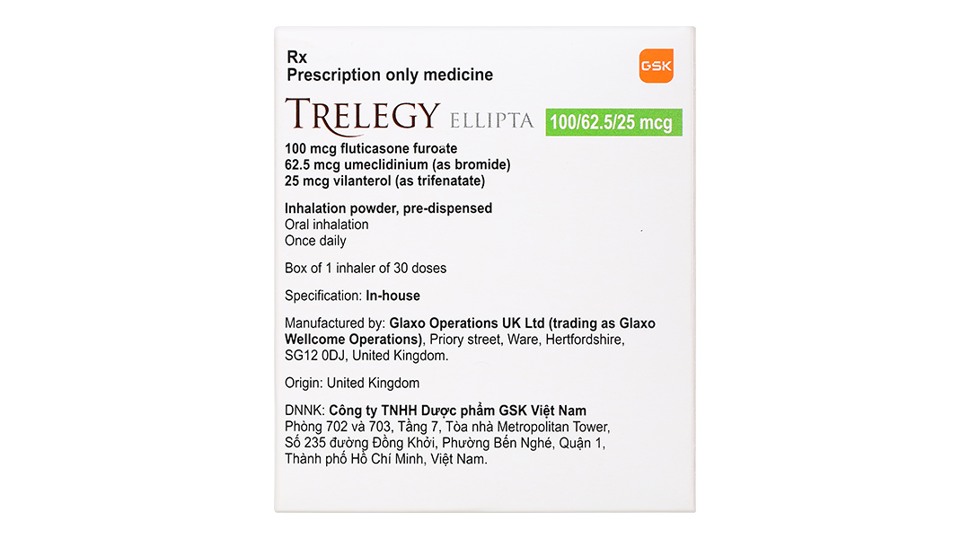 Bột hít phân liều Trelegy Ellipta 100/62,5/25 mcg giảm triệu chứng COPD lọ 30 liều hít
