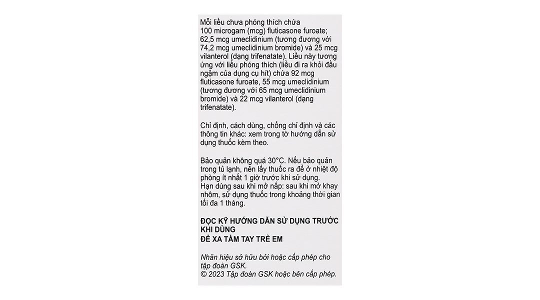 Hoạt chấtUmeclidinium, Vilanterol, Fluticason furoat