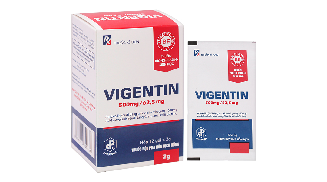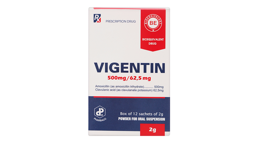 Bột pha hỗn dịch uống Vigentin 500mg/62.5mg trị nhiễm khuẩn (12 gói x 2g)