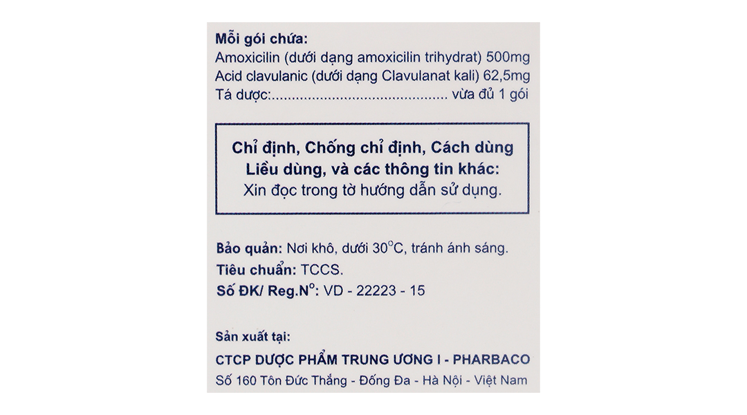 Hoạt chấtAcid clavulanic, Amoxicillin