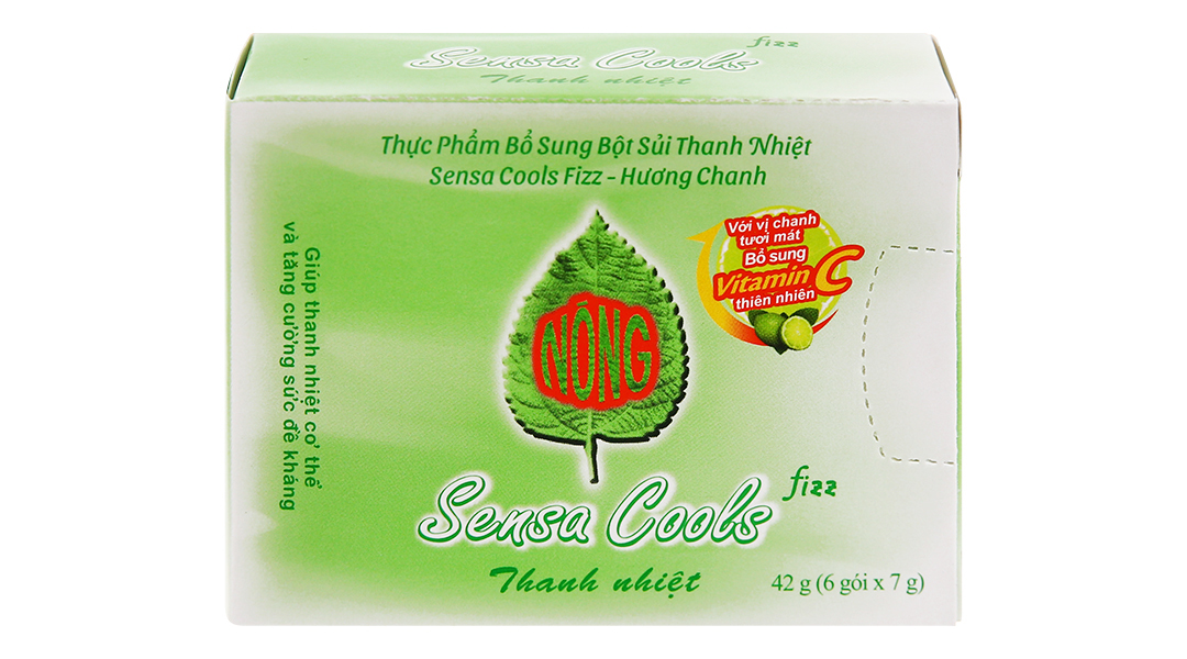 - Bột sủi Sensa Cools là sản phẩm hỗ trợ thanh nhiệt, đặc biệt hữu ích khi bị nóng trong hoặc cảm giác khó chịu do nhiệt độ cao. Sensa Cools chứa thành phần tự nhiên như tinh chất trà xanh với vị chanh thanh mát giúp giải nhiệt, làm mát cơ thể từ bên trong và hỗ trợ giảm các triệu chứng như nóng rát, khô miệng hay nổi mụn do nóng trong. Ngoài ra sản phẩm còn được bổ sung thêm Vitamin C tự nhiên giúp giảm bớt sự mệt mỏi và hỗ trợ tăng sức đề kháng cho cơ thể.