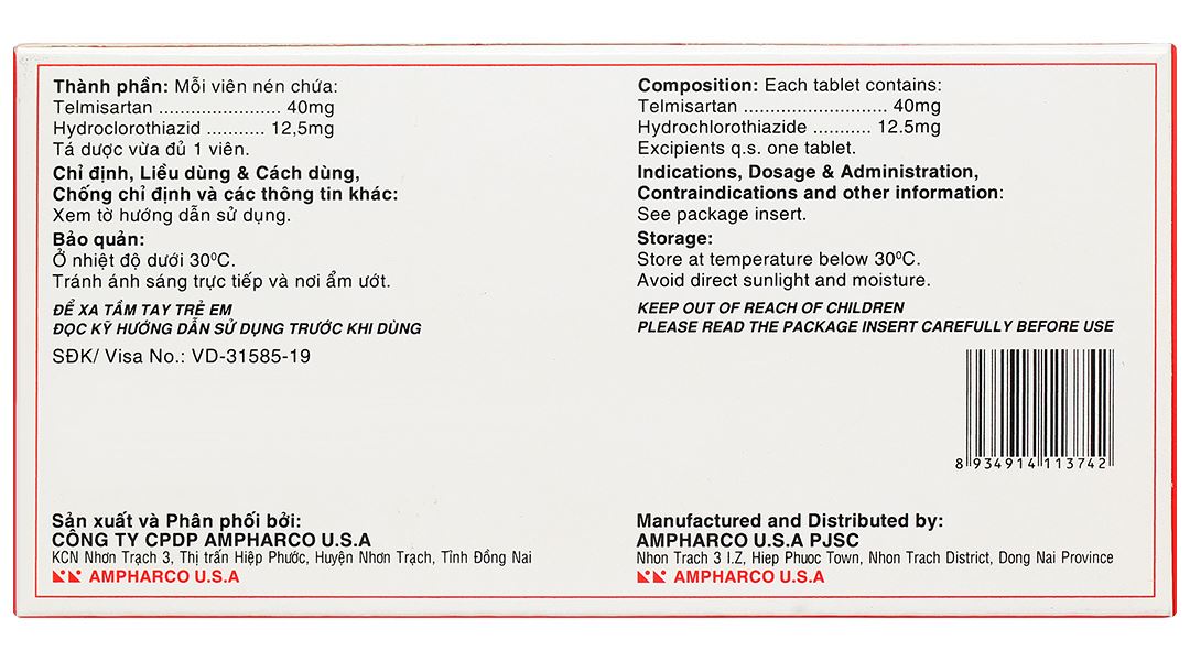 - Telmisartan: Sau khi uống, nồng độ đỉnh trong máu của telmisartan được đạt ở 0,5 – 1,5 giờ. Sinh khả dụng tuyệt đối của telmisartan tại 40 mg và 160 mg tương ứng là 42% và 58%. Thức ăn sẽ làm giảm nhẹ sinh khả dụng của telmisartan với việc giảm diện tích dưới đường cong (AUC) của viên 40 mg là khoảng 6% và với liều 160 mg là khoảng 19%. Khoảng 3 giờ sau khi uống thì nồng độ của telmisartan trong huyết tương là như nhau cho dù được uống vào lúc đói hoặc uống với thức ăn. Việc giảm lượng nhỏ AUC dự kiến sẽ không làm giảm hiệu quả điều trị. Telmisartan không bị tích lũy nhiều trong huyết tương nếu dùng lặp lại.