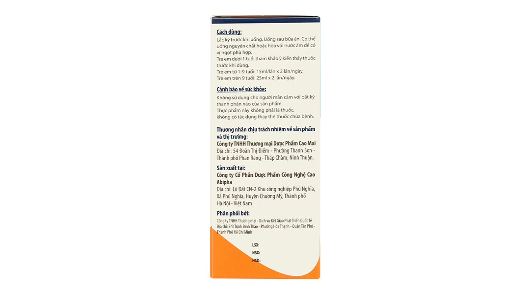 Đối tượng sử dụngTrẻ em từ 1 tuổi trở lên