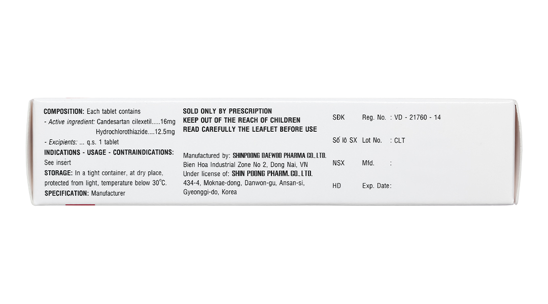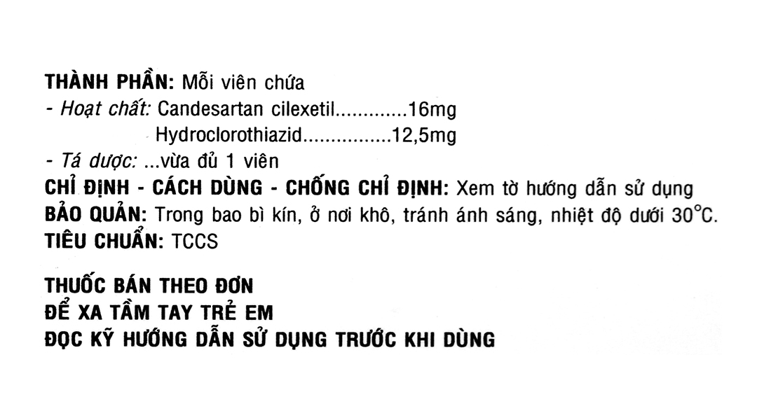 Hoạt chất: Candesartan cilexetil 16 mg, Hydroclorothiazid 12,5 mg.