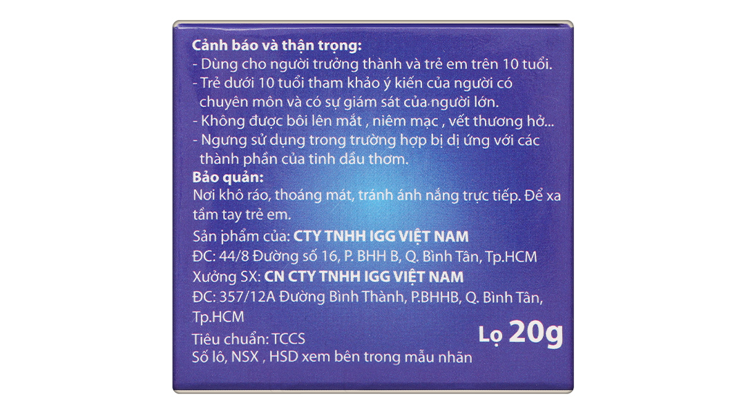 Người lớn, cẩn trọng với phụ nữ có thai và cho con bú.
