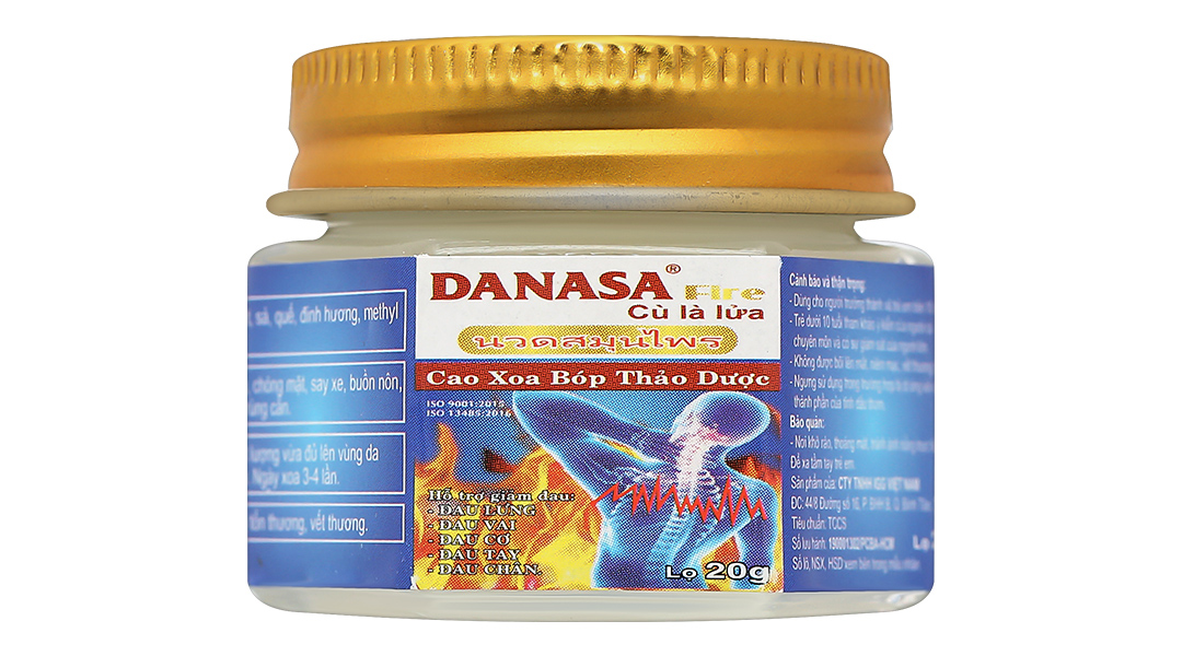 Sản phẩm cao xoa thảo dược Danasa Fire Cù Là Lửa có công dụng tốt trong việc hỗ trợ làm ấm cơ thể, giảm nhức đầu, chóng mặt, say xe, buồn nôn, hỗ trợ giảm đau nhức chân, tay, cơ, vai gáy, giảm các vết sưng tấy do côn trùng đốt.