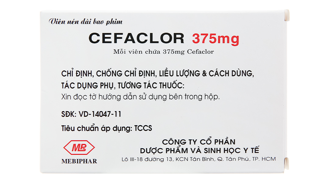 Cefaclor Mediphar 375mg trị nhiễm khuẩn đường hô hấp (1 vỉ x 10 viên)