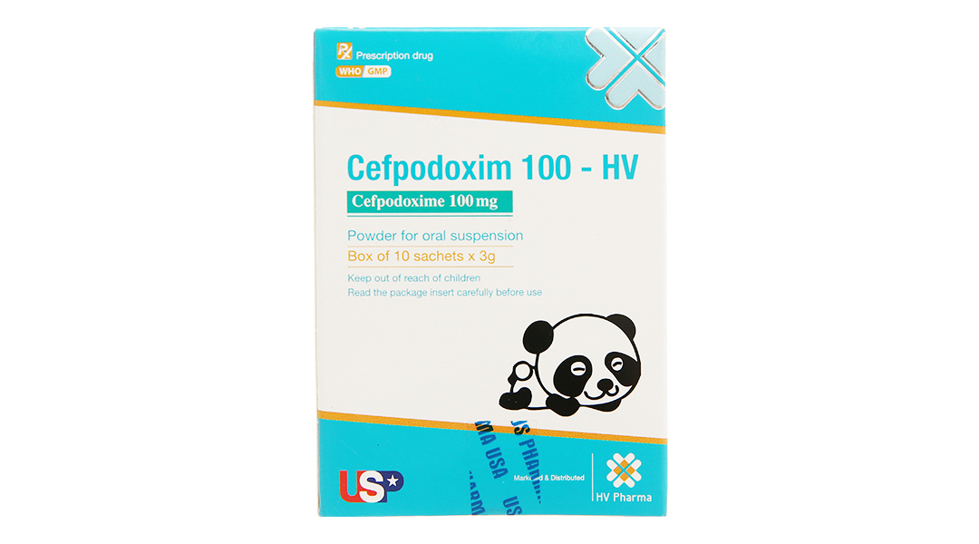 Bột pha hỗn dịch uống Cefpodoxim 100-HV trị nhiễm khuẩn (10 gói x 3g)