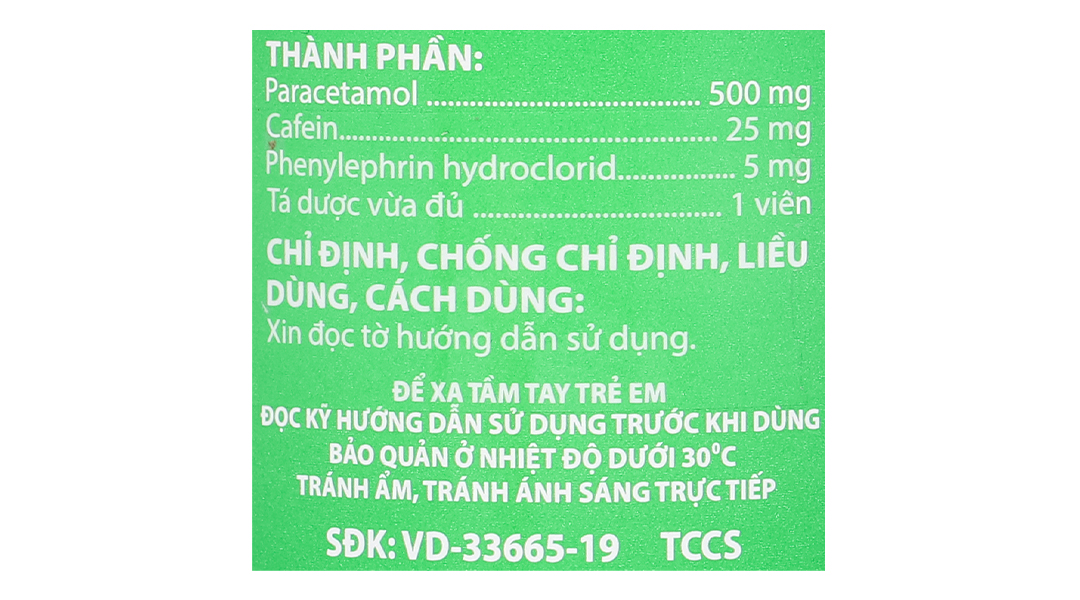 Người lớn và trẻ em ≥ 16 tuổi: 2 viên/lần x 4 lần/ngày, cách 4-6 giờ mỗi lần. Uống không quá 8 viên/ngày.