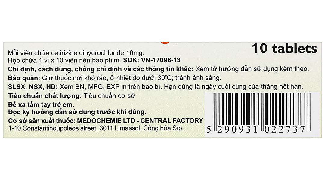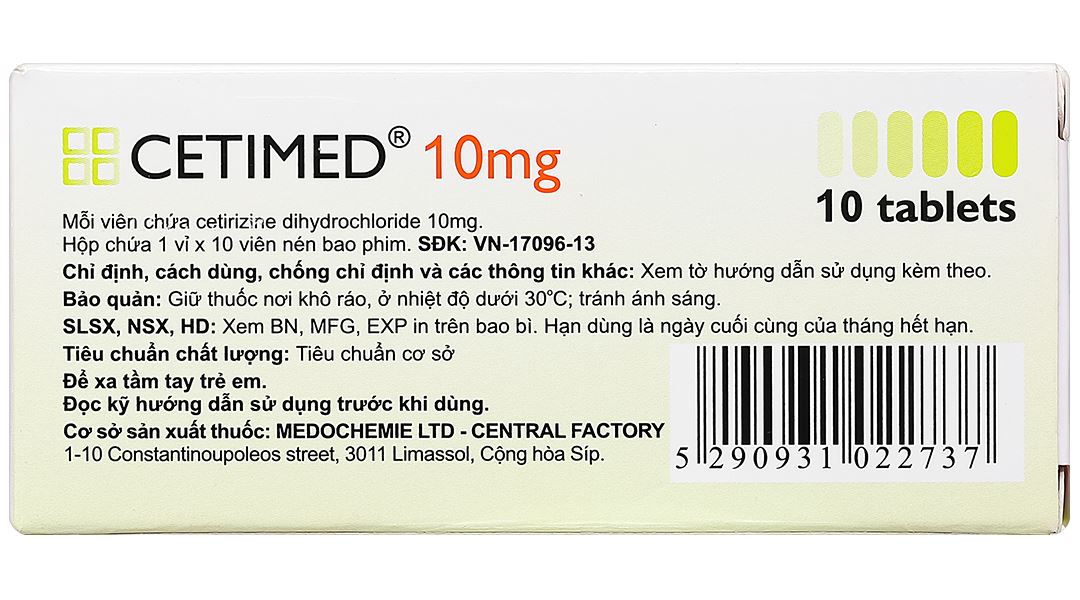 Cetimed 10mg điều trị triệu chứng viêm mũi dị ứng (1 vỉ x 10 viên)