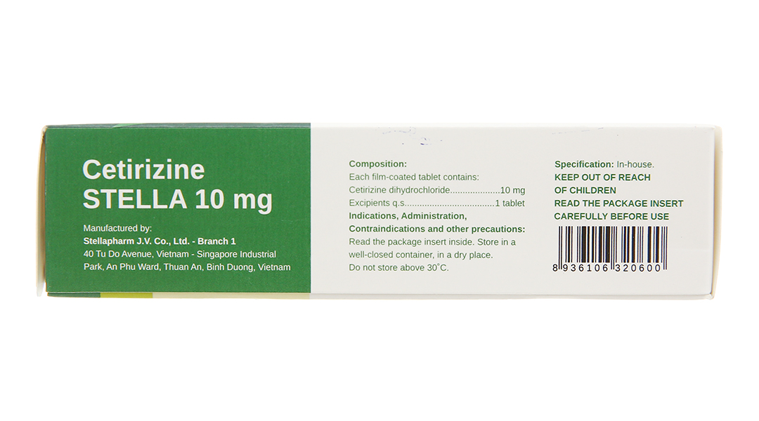 Cetirizine Stella 10mg giảm các triệu chứng viêm mũi dị ứng (5 vỉ x 10 viên)