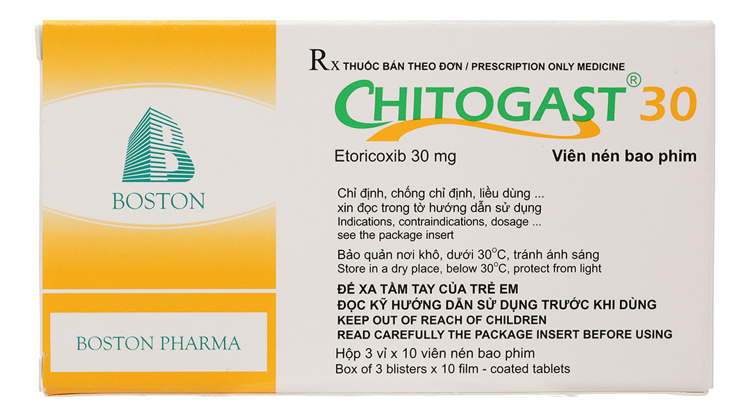 Chitogast 30 trị triệu chứng các bệnh viêm xương khớp cấp và mạn tính (3 vỉ x 10 viên)