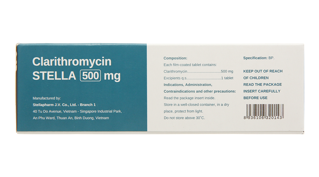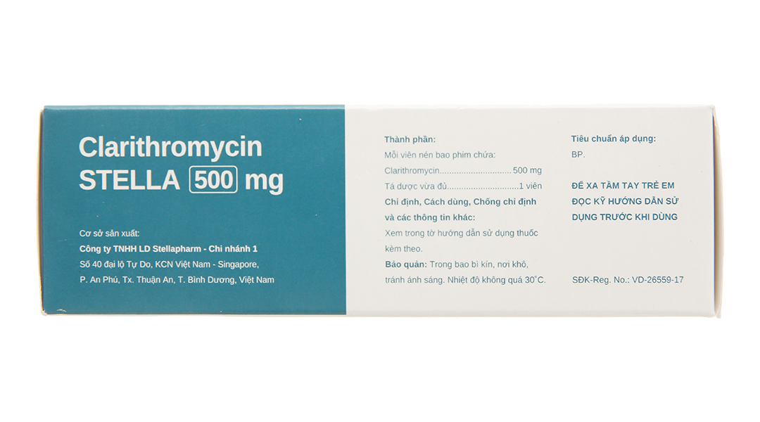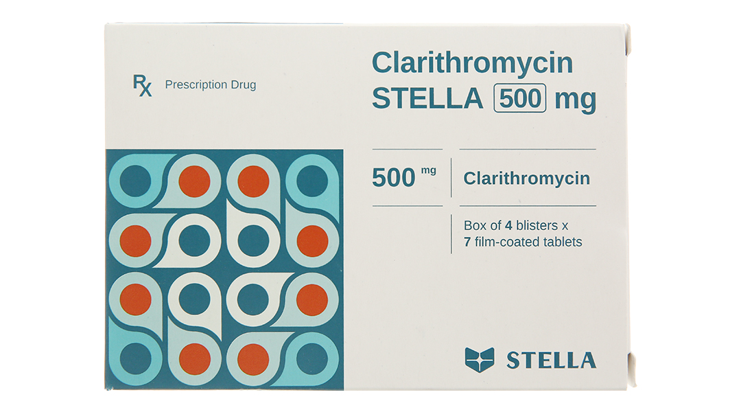 Clarithromycin Stella 500mg trị nhiễm khuẩn (4 vỉ x 7 viên)