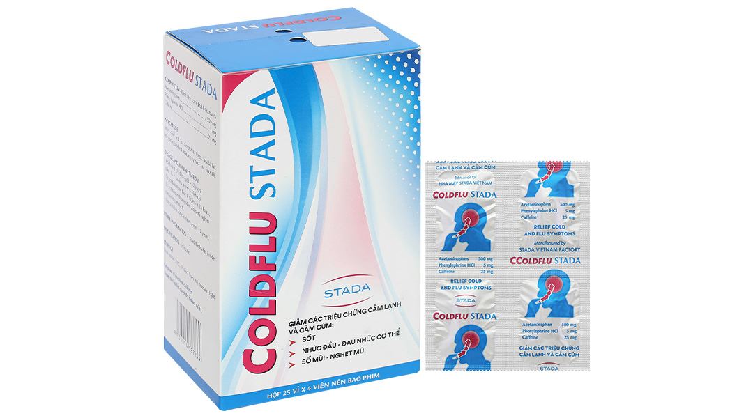 Coldflu Stada trị các triệu chứng cảm cúm: sốt, đau và xung huyết mũi (25 vỉ x 4 viên)