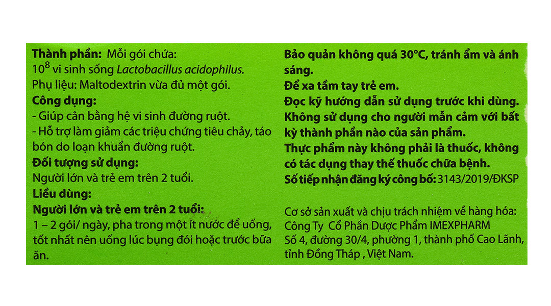 - Lactobacillus acidophilus có khả năng sản xuất enzyme lactase nhằm phân hủy đường lactose thành axit lactic – dễ tiêu hóa và có vai trò cân bằng pH, giảm tiêu chảy, táo bón,…