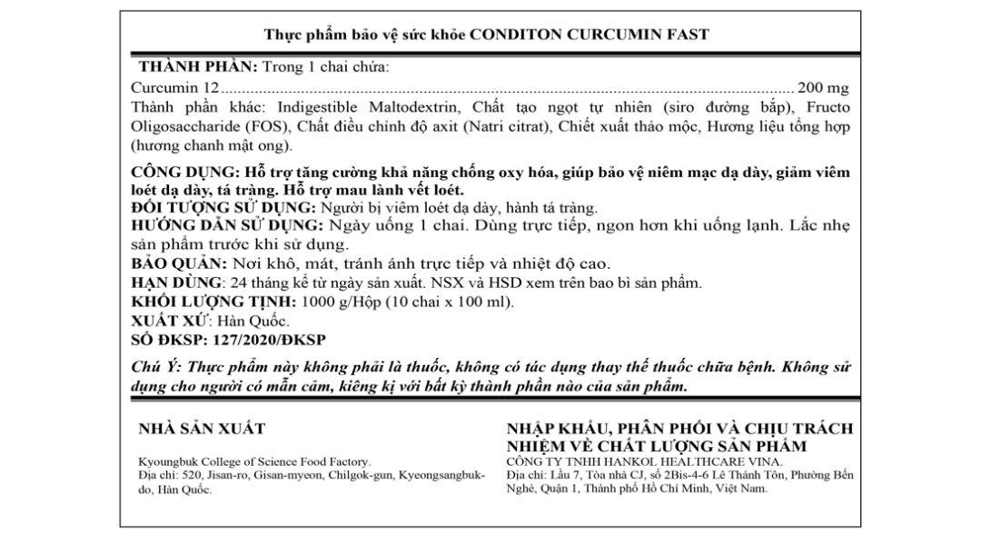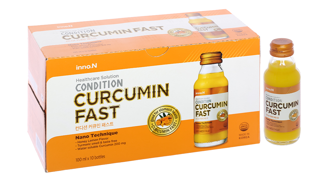 - Condition Curcumin fast là sản phẩm chứa curcumin ở dạng nước uống liền, giúp tăng khả năng hấp thụ.
