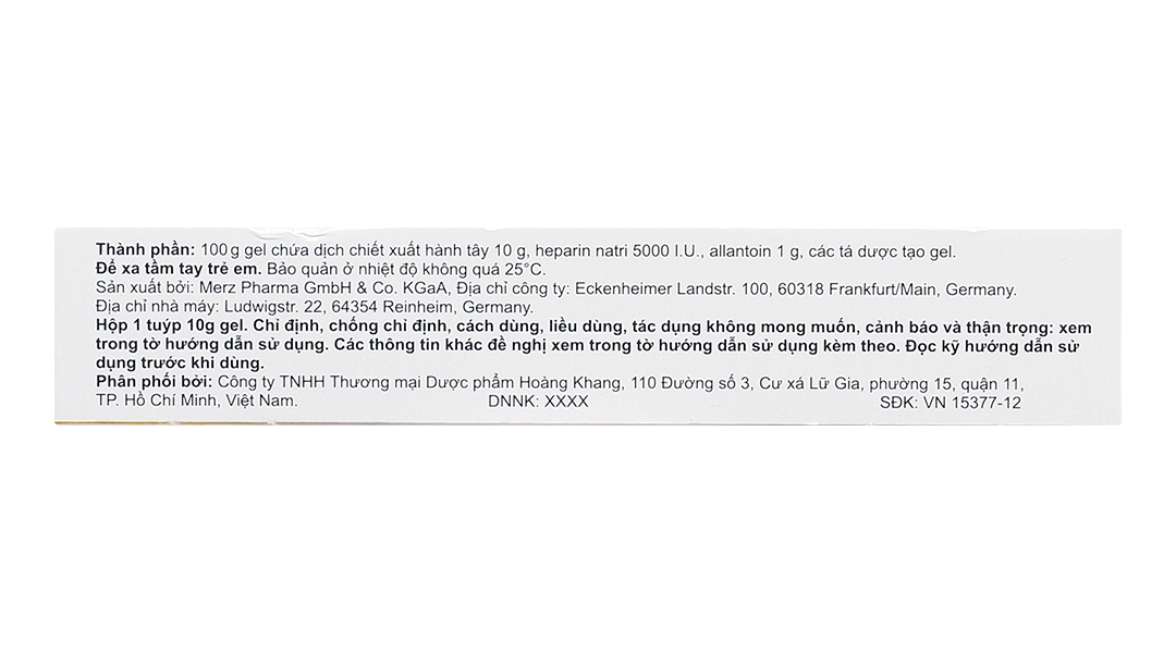 Hoạt chấtHeparin, Allantoin, Dịch chiết xuất hành tây