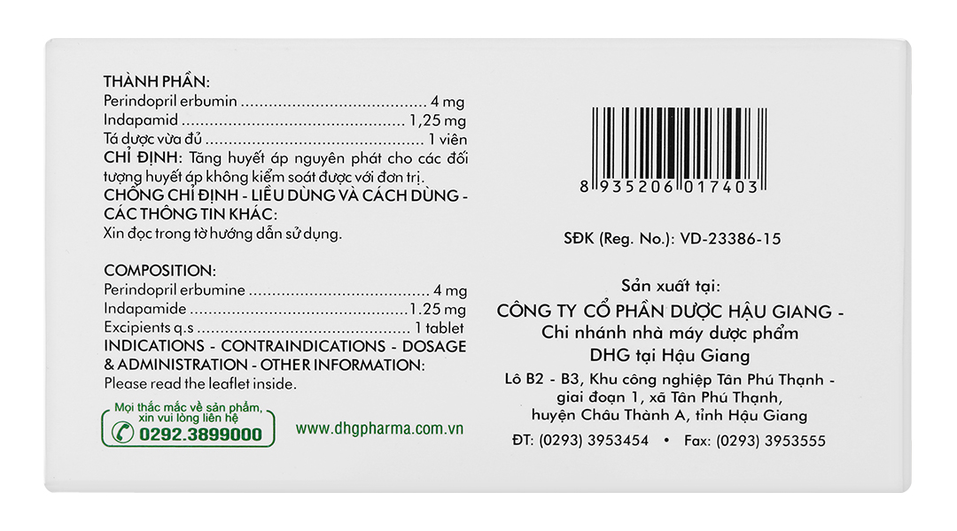 Thuốc được hấp thu nhanh sau khi uống. Thuốc chuyển hóa mạnh, chủ yếu ở gan. Perindopril chuyển hóa thành perindoprilat có hoạt tính, thức ăn làm giảm sự biến đổi sinh học thành perindoprilat và do đó làm giảm sinh khả dụng. Thuốc được thải trừ chủ yếu qua nước tiểu. Thẩm tách máu không loại được indapamid ra khỏi tuần hoàn.