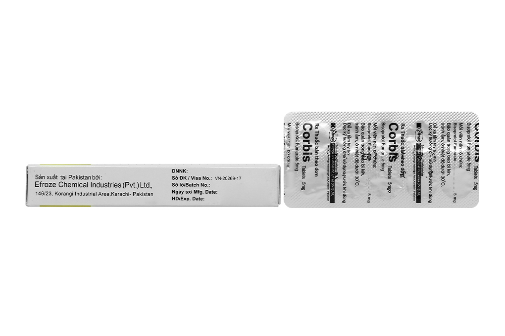 – Corbis Tablets 5mg điều trị tăng huyết áp và đau thắt ngực.
