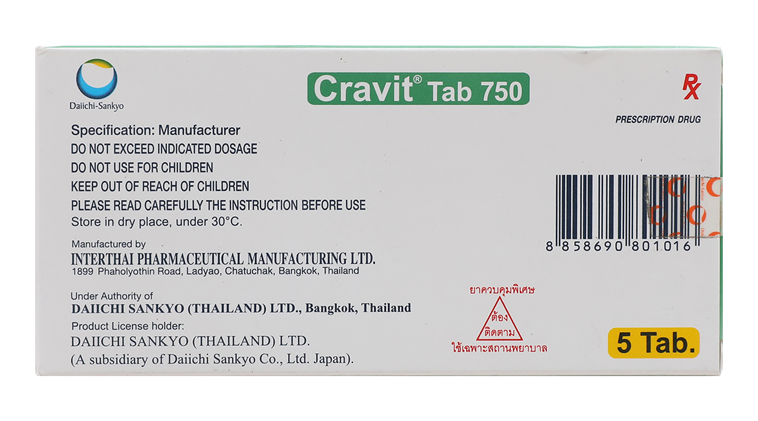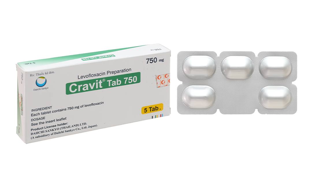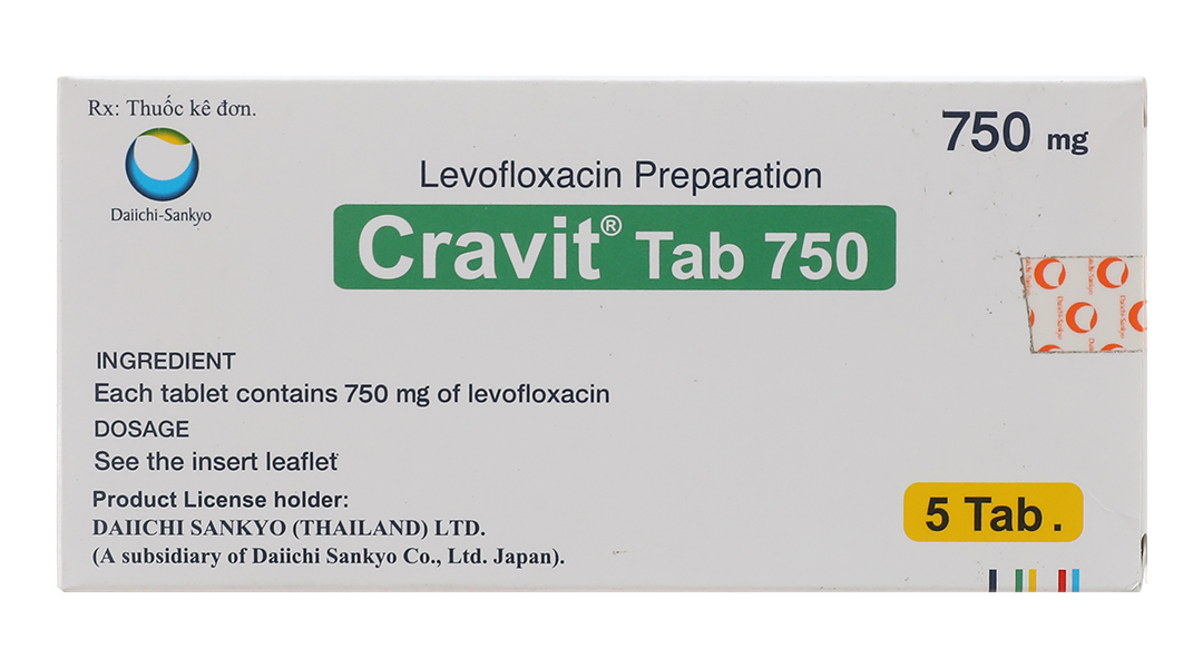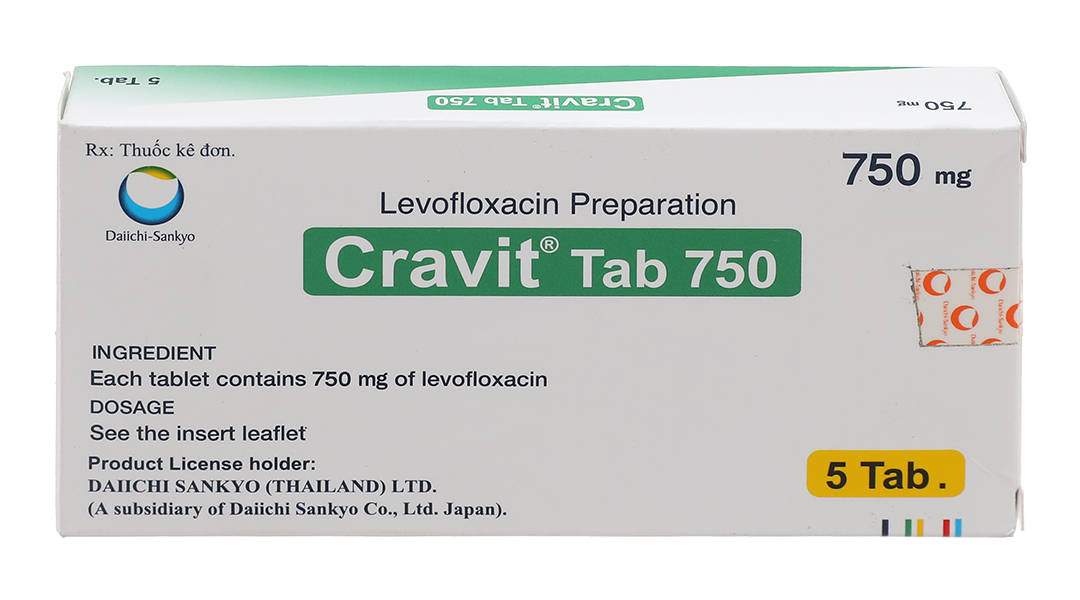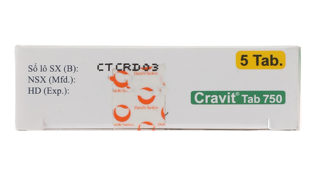 Cravit Tab 750 trị nhiễm khuẩn nhẹ, trung bình và nghiêm trọng (1 vỉ x 5 viên)