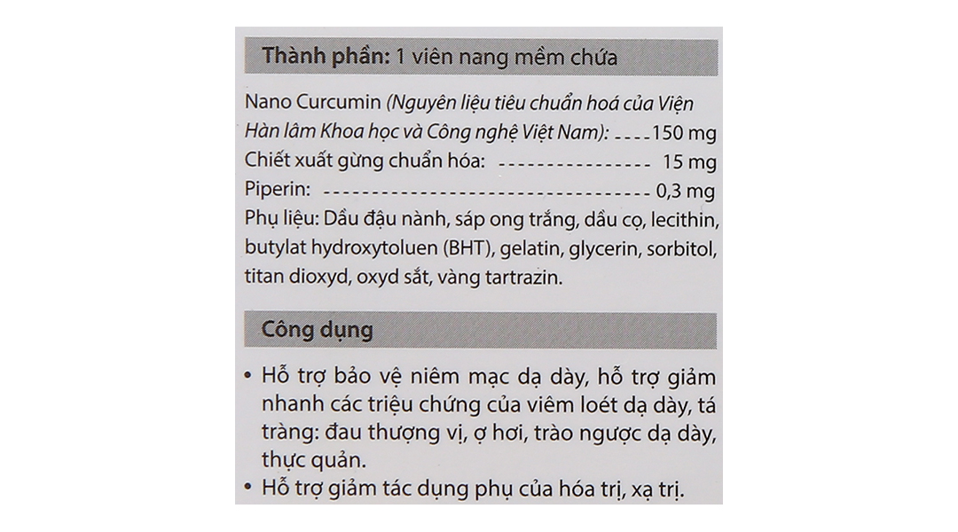 Công dụngHỗ trợ bảo vệ niêm mạc dạ dày, hỗ trợ giảm nhanh các triệu chứng của viêm loét dạ dày