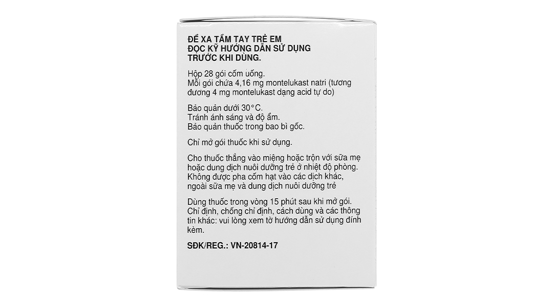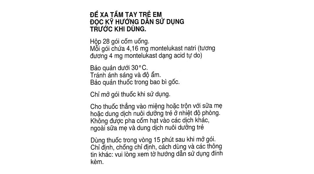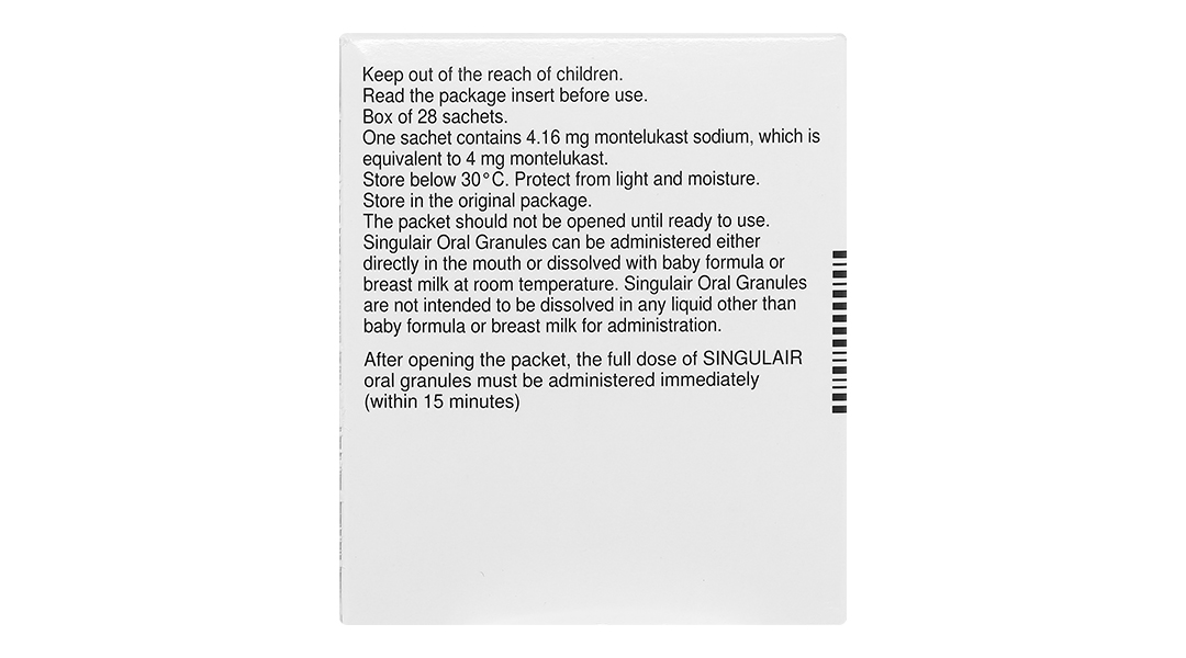 Thuốc cốm Singulair 4mg trị hen phế quản mạn tính hộp 28 gói