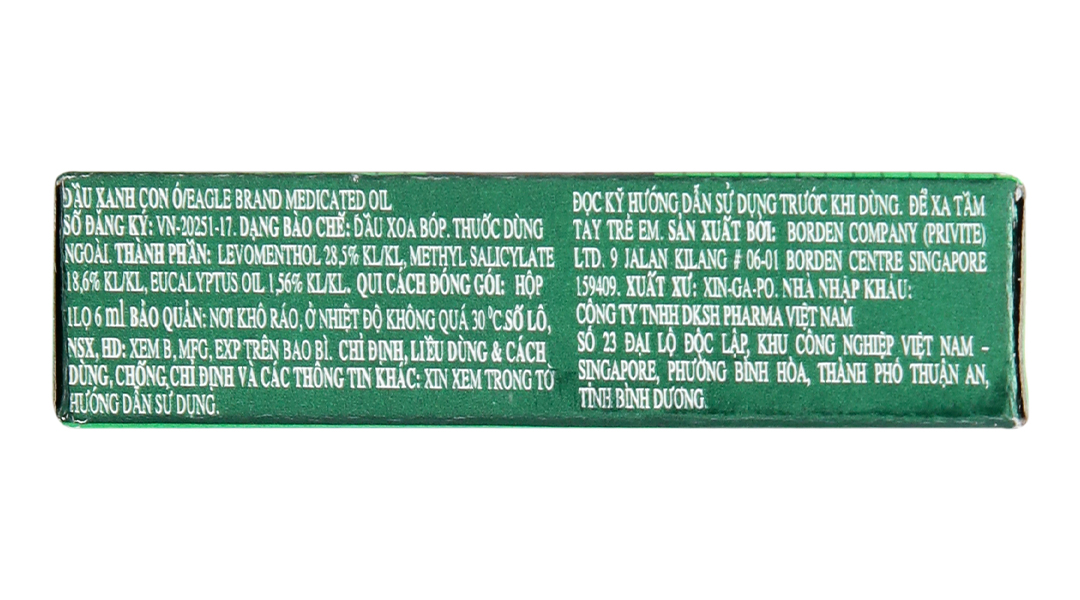 Tá dược: Ethanol 96%, Amber Oil, Rose Oil, Majora Oil, Vanillin, Green Colour, Light Liquid Paraffin.