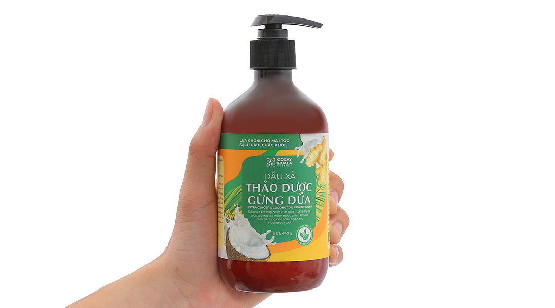 Dầu xả thảo dược Gừng dừa Cocay Hoala giúp tóc mềm mượt, giảm khô xơ chai 440g