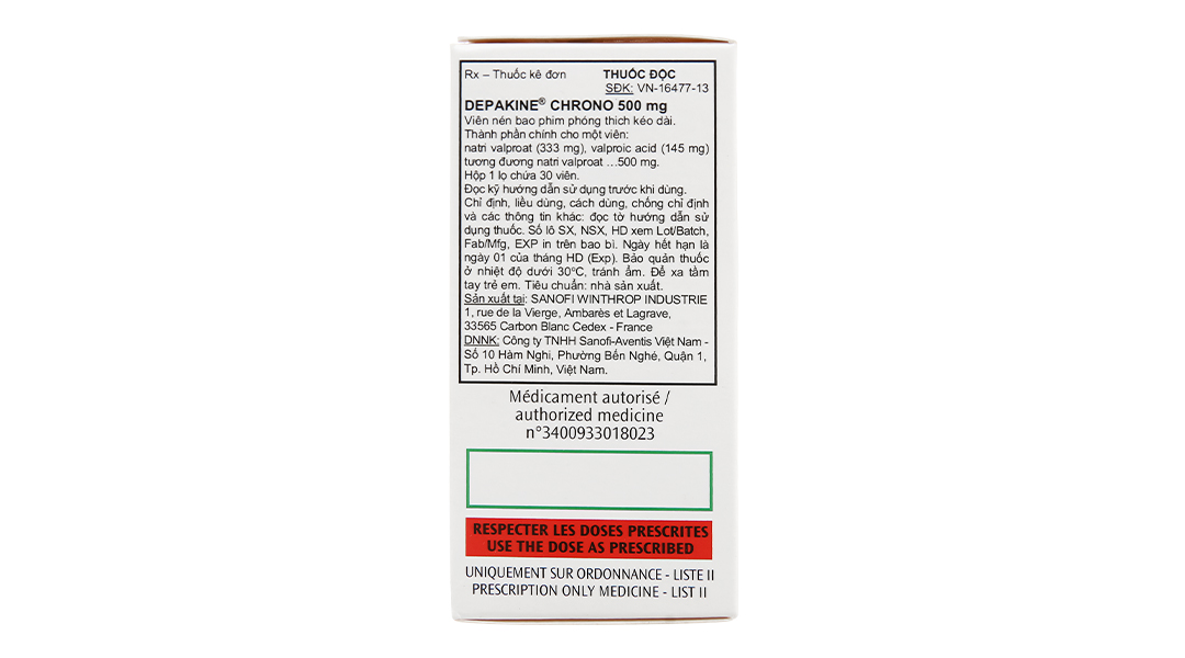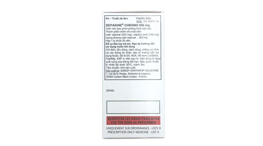 Depakine Chrono 500mg trị các thể động kinh, dự phòng hưng cảm lọ 30 viên