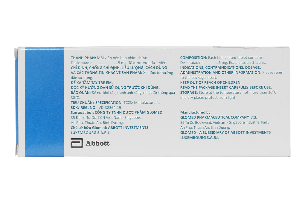 Thành phần hoạt chất: Desloratadin 5mg.