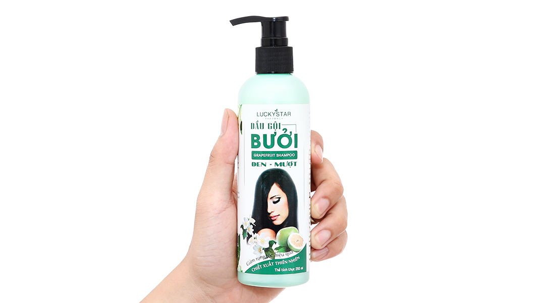 Làm ướt tóc và cho dầu gội bưởi Lucky Star lên tóc ướt, xoa nhẹ nhàng tạo cảm giác thoải mái và sau đó xả sạch lại với nước.