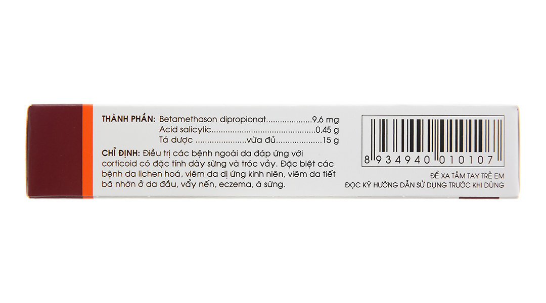 Hoạt chất: Betamethason dipropionat 9.6mg, Acid salicylic 0.45g.