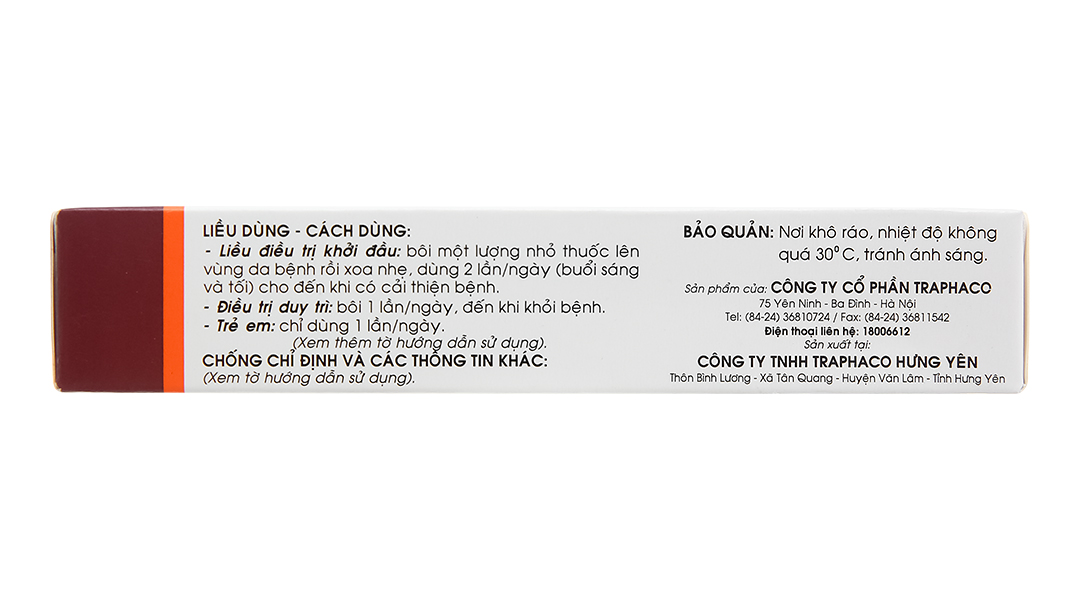 – Điều trị duy trì: Bôi 1 lần/ngày, đến khi khỏi bệnh.