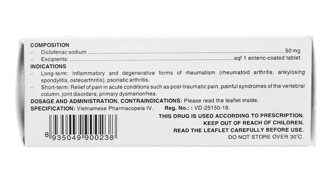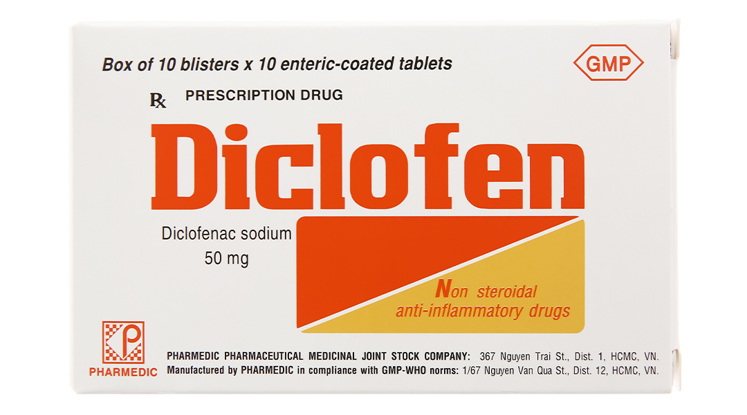 Diclofen 50mg giảm đau, kháng viêm xương khớp (10 vỉ x 10 viên)