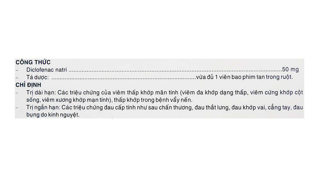 Công dụngTrị triệu chứng trong các bệnh viêm xương khớp, giảm đau cấp và mạn tính