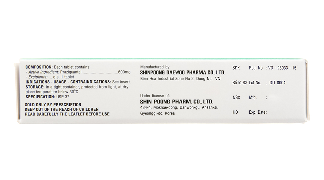 - Paragonimus westermani: 25 mg/kg/lần, 3 lần trong ngày, dùng 1 – 2 ngày, cho cả người lớn và trẻ em.