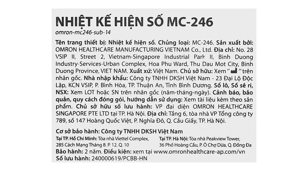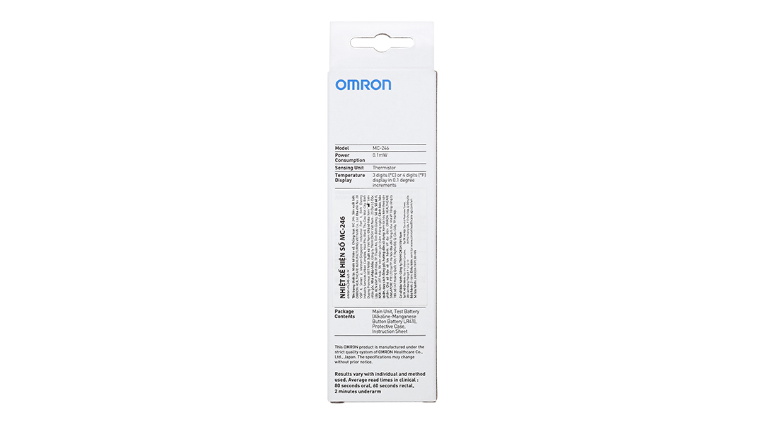 Thiết kế thuận tiện và an toàn: Thiết kế nhỏ gọn và kín hoàn toàn, không thấm nước, nhiệt kế điện tử Omron MC – 246 rất an toàn khi dùng và dễ mang đi hay cất giữ. Tuổi thọ pin cao có thể sử dụng trong 2 năm hoặc hơn nếu sử dụng 3 lần/ngày.