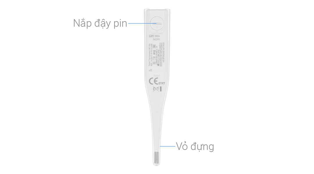 - Pin lắp trong nhiệt kế chỉ để dùng thử, do vậy tuổi thọ có thể không được như pin mới.