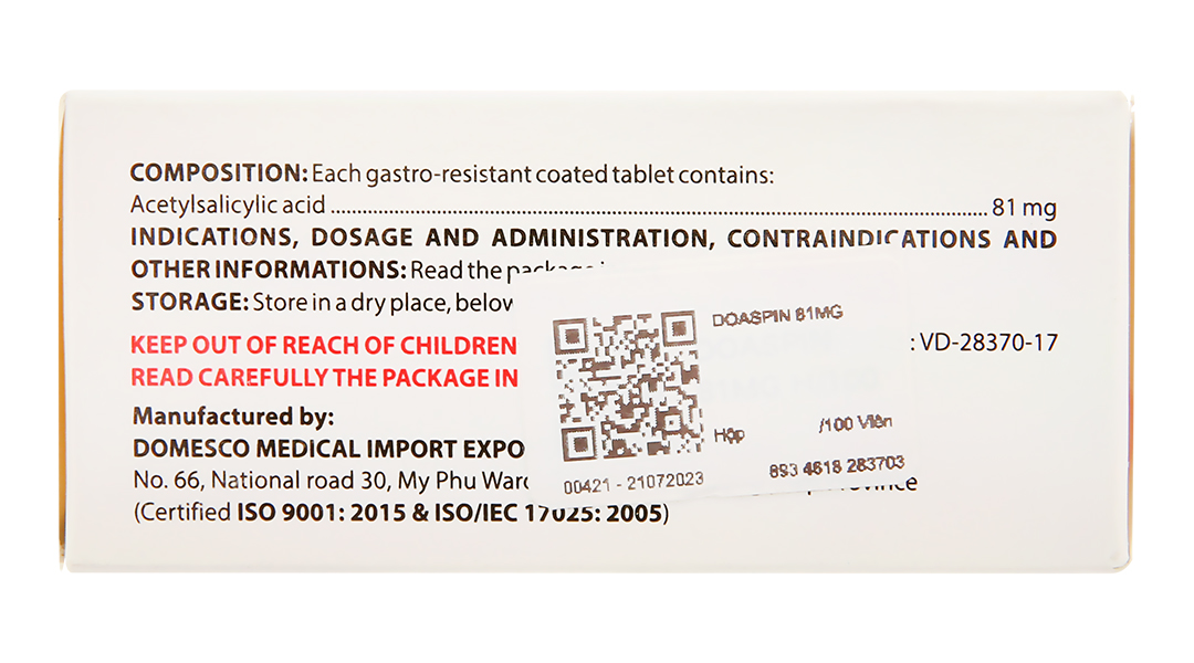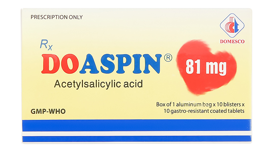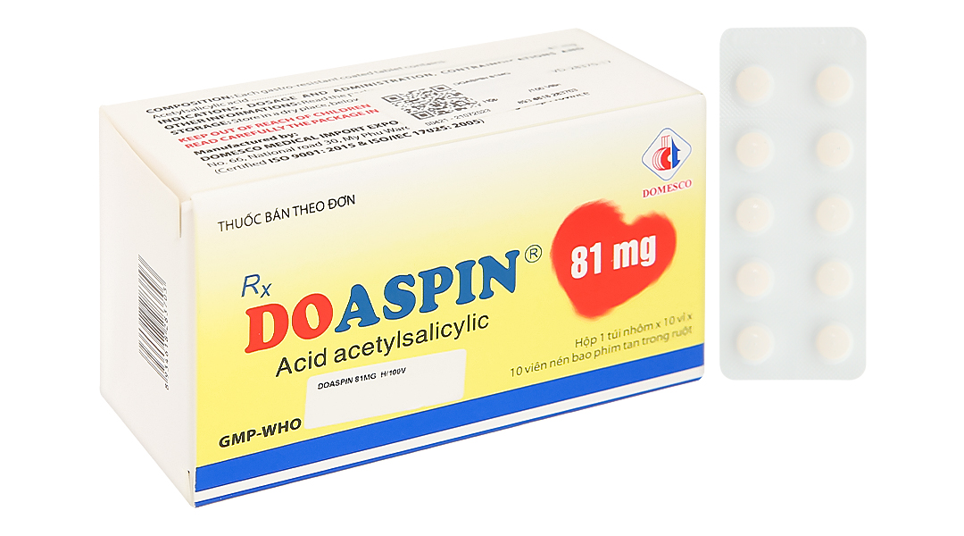 Thời kỳ cho con bú: Một lượng nhỏ salicylat và các chất chuyển hóa được bài tiết vào sữa mẹ. Do các tác dụng có hại trên trẻ nhỏ cho đến nay vẫn chưa được báo cáo nên việc sử dụng liều khuyến cáo ngắn hạn không yêu cầu ngừng việc cho bú. Trong trường hợp sử dụng dài hạn và/hoặc sử dụng liều cao hơn, nên ngừng việc cho bú lại. – Tương tác thuốcChống chỉ định kết hợp với Methotrexat (với liều >15 mg/tuần): Sự kết hợp methotrexat và acid acetylsalicylic có thể làm tăng độc tính trên máu của methotrexat do acid acetylsalicylic làm giảm độ thanh thải của methotrexat ở thận. Vì vậy, chống chỉ định sử dụng methotrexat (ở liều > 15 mg/tuần) đồng thời với Doaspin 81mg. Không khuyến cáo kết hợp với Thuốc tăng thải acid uric, như probenecid: Salicylat làm đảo ngược tác dụng của probenecid nên cần tránh kết hợp các thuốc này.