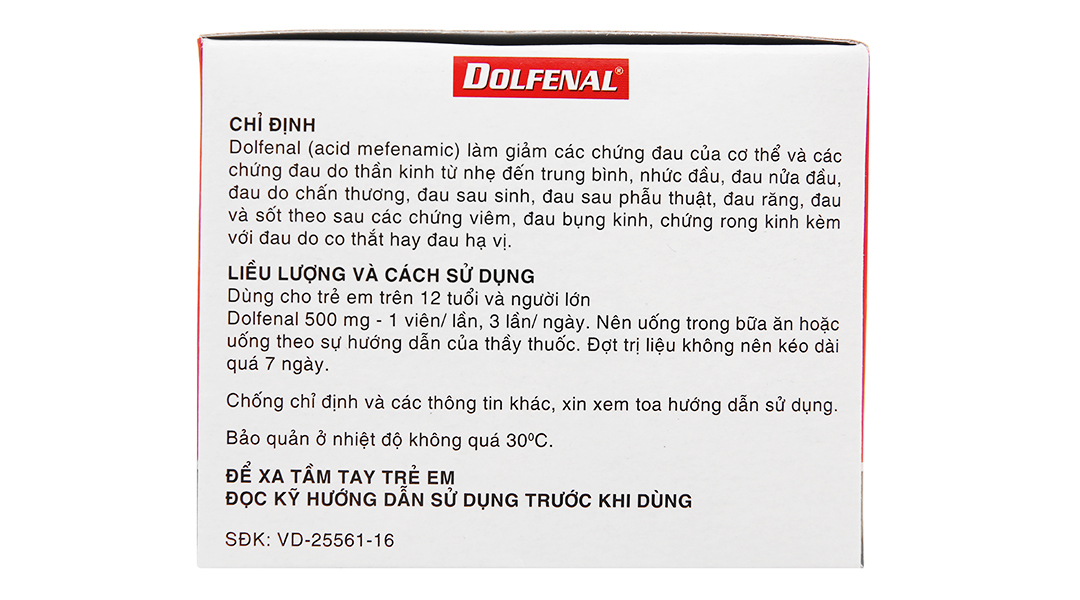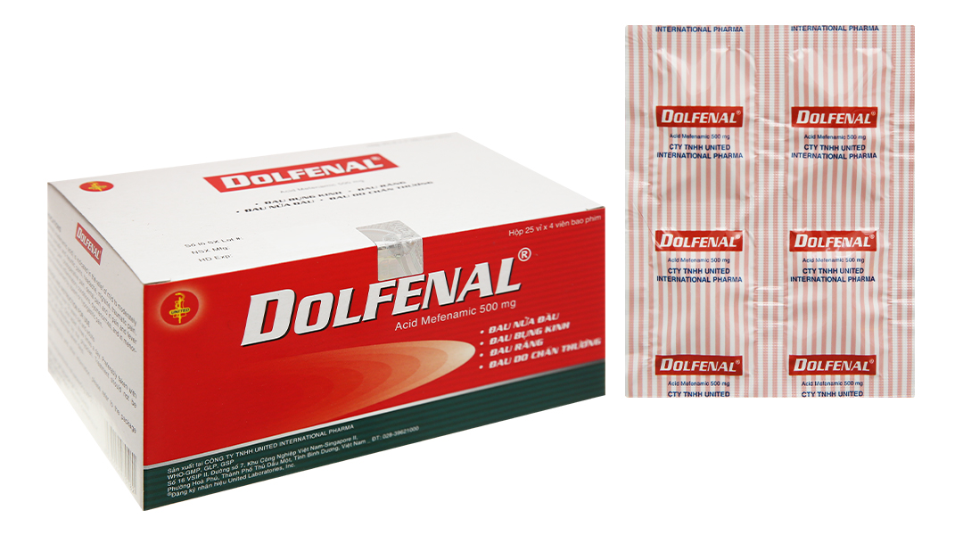 Dolfenal (acid mefenamic) làm giảm các chứng đau của cơ thể và các chứng đau do thần kinh từ nhẹ đến trung bình, nhức đầu, đau nửa đầu, đau do chấn thương, đau sau sinh, đau sau phẫu thuật, đau răng, đau và sốt theo sau các chứng viêm, đau bụng kinh, chứng rong kinh kèm với đau do co thắt hay đau hạ vị.
