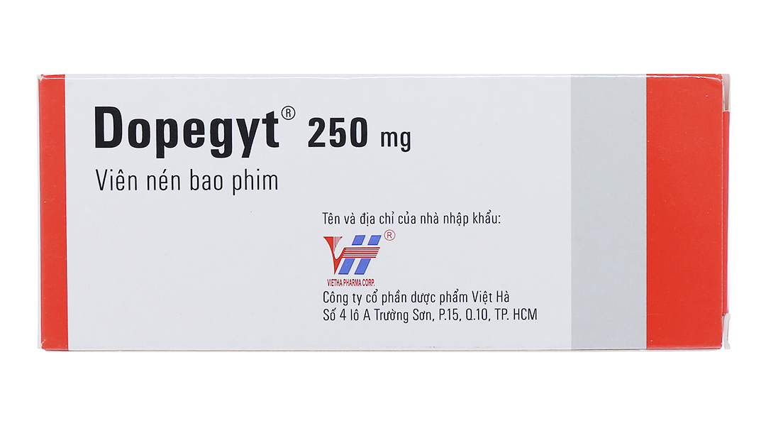 – Thận trọng khi sử dụngThiếu máu tan huyết hiếm khi xảy ra khi đang dùng methyldopa. Nếu có triệu chứng gợi ý thiếu máu thì cần phải đo lượng haemoglobin và dung tích hồng cầu. Nếu thiếu máu được xác nhận thì cần phải làm thêm các xét nghiệm khác về tan huyết. Nếu có thiếu máu tan huyết thì phải ngưng Dopegyt. Thường sẽ hồi phục nhanh chóng một khi ngưng thuốc, dù có dùng kèm hay không corticosteroid. Tuy nhiên đã có trường hợp tử vong dù hiếm. Không bao giờ được dùng methyldopa cho bệnh nhân nếu bệnh nhân này bị thiếu máu tan huyết gây ra bởi methyldopa. Một vài bệnh nhân khi dùng methyldopa kéo dài có xét nghiệm Coombs dương tính. Qua các báo cáo của những điều tra khác nhau, tỷ lệ xảy ra trung bình là từ 10% đến 20%. Hiếm khi xảy ra xét nghiệm Coombs dương tính trong sáu tháng điều trị đầu tiên, và một khi nó đã không xảy ra trong vòng 12 tháng thì sau này cũng ít xảy khi điều trị lâu dài. Sự dương tính của xét nghiệm Coombs tùy thuộc vào liều lượng, tỷ lệ xảy ra thấp nhất gặp ở những bệnh nhân dùng methyldopa với liều 1g hay ít hơn trong ngày. Xét nghiệm Coombs dương tính, nếu xảy ra trong khi điều trị, sẽ trở nên âm tính sau nhiều tuần hay nhiều tháng một khi ngưng thuốc. Nên thực hiện việc đếm hồng cầu và làm xét nghiệm Coombs trực tiếp lúc bắt đầu điều trị, và sau đó vào tháng thứ 6 và thứ 12 khi điều trị. Một xét nghiệm Coombs trực tiếp dương tính trước đó hay xảy ra sau này, tự bản thân nó không phải là một chống chỉ định cho việc dùng methyldopa. Nếu xảy ra xét nghiệm Coombs trực tiếp dương tính trong khi dùng methyldopa, phải xác định là có bị thiếu máu tan huyết hay không và xét nghiệm Coombs dương tính đó có ý nghĩa về mặt lâm sàng hay không. Biết trước xét nghiệm Coombs dương tính sẽ giúp cho việc đánh giá thử nghiệm chéo nhóm máu trước khi truyền máu. Nếu một bệnh nhân đang dùng methyldopa nay cần phải được truyền máu, thì phải làm xét nghiệm Coombs trực tiếp và gián tiếp trước khi truyền máu. Nếu không có thiếu máu tan huyết thì thường chỉ có xét nghiệm Coombs trực tiếp là sẽ dương tính. Một mình xét nghiệm Coombs trực tiếp dương tính sẽ không ảnh hưởng đến việc xác định hay thử nghiệm chéo nhóm máu. Nếu xét nghiệm Coombs gián tiếp cũng dương tính thì sẽ gây khó khăn cho việc đánh giá thử nghiệm chéo nhóm máu, trong những trường hợp này sẽ phải cần đến sự trợ giúp của một nhà huyết học hay một chuyên gia về truyền máu. Trong khi điều trị, hiếm có báo cáo về giảm bạch cầu, giảm bạch cầu hạt hồi phục lại được. Số lượng bạch cầu hạt sẽ trở về bình thường sau khi ngưng thuốc. Cũng có xảy ra giảm tiểu cầu hồi phục lại được nhưng hiếm. Thỉnh thoảng trong ba tuần lễ đầu điều trị có xảy ra sốt, đôi khi có kèm theo tăng bạch cầu ái toan, hay các xét nghiệm bất thường về chức năng gan. Cũng có thể xảy ra vàng da, có sốt kèm theo hay không. Các triệu chứng thường xuất hiện trong vòng hai hay ba tháng đầu tiên khi điều trị. Trên một số bệnh nhân, sự ứ mật có thể được xác nhận dựa trên các triệu chứng. Hoại tử gan gây tử vong đã được báo cáo tuy rất hiếm. Sinh thiết gan, thực hiện ở một số bệnh nhân bị rối loạn chức năng gan, cho thấy có hoại tử vi thể ở trung tâm, phù hợp với sự quá mẫn với thuốc. Nên làm các xét nghiệm chức năng gan và đếm số lượng bạch cầu và tỷ lệ bách phân bạch cầu trước khi điều trị methyldopa và vào tuần thứ 6 và thứ 12 đầu tiên khi điều trị, hay mỗi khi có sốt không rõ nguyên nhân. Nếu xảy ra sốt, bất thường trong chức năng gan, hay vàng da thì phải ngưng thuốc ngay. Nếu có liên quan đến quá mẫn với methyldopa thì sau khi ngưng thuốc sẽ hết sốt, các bất thường trong chức năng gan sẽ trở về bình thường, ở những bệnh nhân này không được cho dùng lại methyldopa. Thận trọng đặc biệt khi dùng Dopegyt cho những bệnh nhân có tiền sử bệnh gan hay rối loạn chức năng gan. Có thể cần phải giảm liều thuốc gây mê nếu bệnh nhân đang được điều trị với methyldopa. Nếu trong khi gây mê bị hạ huyết áp thì nên điều trị bằng thuốc làm tăng huyết áp. Các thụ thể gây tiết adrenalin vẫn còn nhạy cảm trong khi điều trị bằng methyldopa. Ở một số ít bệnh nhân được điều trị với methyldopa có thể xảy ra phù và tăng cân, khi đó dùng thuốc lợi tiểu sẽ cho kết quả tốt. Phải ngưng thuốc nếu phù gia tăng hay nếu xuất hiện các triệu chứng suy tim. Vì methyldopa có thể bị loại khỏi máu bằng thẩm phân, nên sau khi được thẩm phân máu huyết áp có thể tăng. Ở những bệnh nhân có bệnh mạch máu não ở hai bên, methyldopa có thể gây các cử động múa giật – múa vờn không tự chủ. Nếu các cử động này xuất hiện thì phải ngưng methyldopa. Phải rất thận trọng khi dùng methyldopa cho những bệnh nhân có loạn chuyển hóa porphyrin ở gan, hay những ai có người thân mắc 