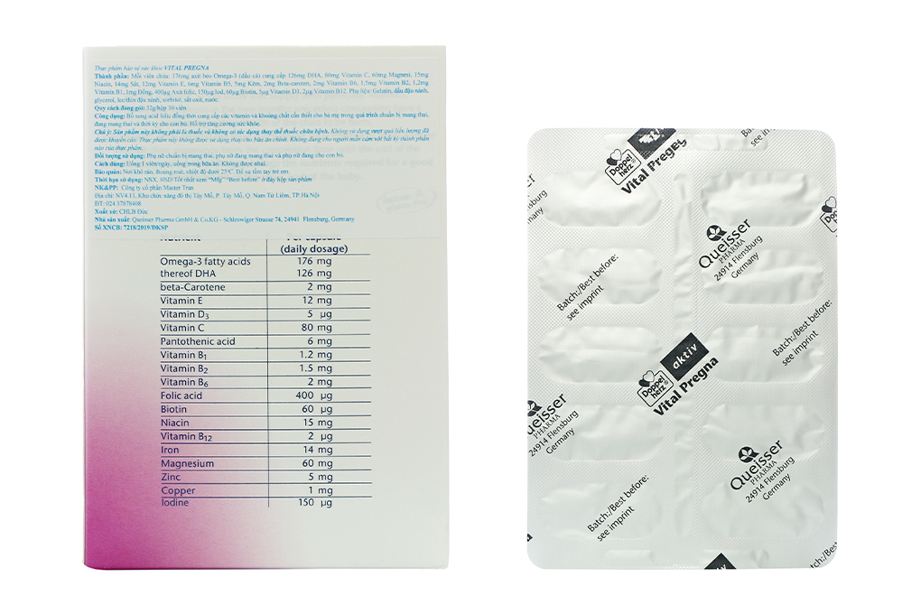 Mỗi viên nang Doppelherz Aktiv Vital Pregna có chứa: