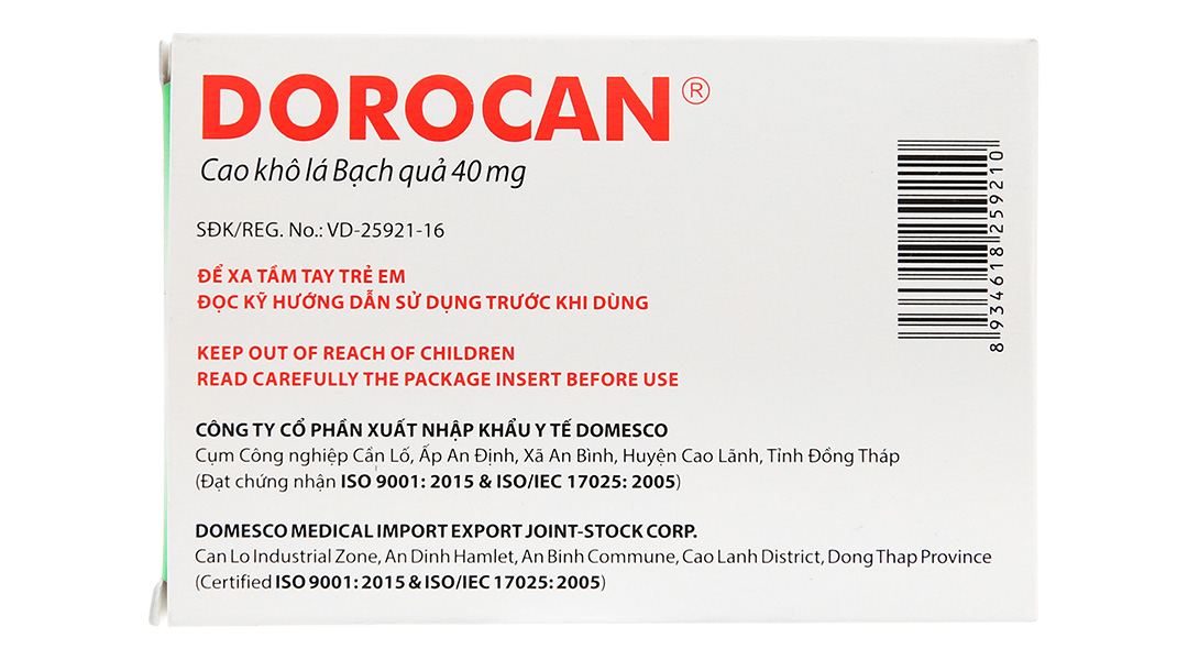 Mỗi viên nén bao phim Dorocan 40mg chứa: